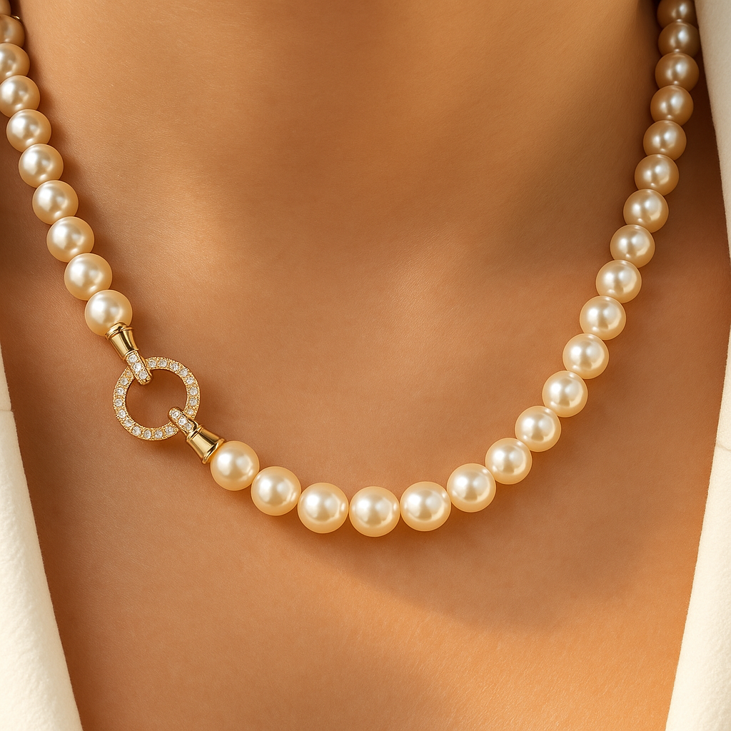 Korkealaatuiset jäljitelmähelmet, jotka jäljittelevät aitojen helmien kiiltoa ja ylellisyyttä. Kullanväriset korostukset tuovat kaulakoruun lämpöä ja hienostunutta ilmettä. Klassinen ja ajaton muotoilu, joka sopii niin juhlatilaisuuksiin kuin hienostuneeseen arkipukeutumiseen.