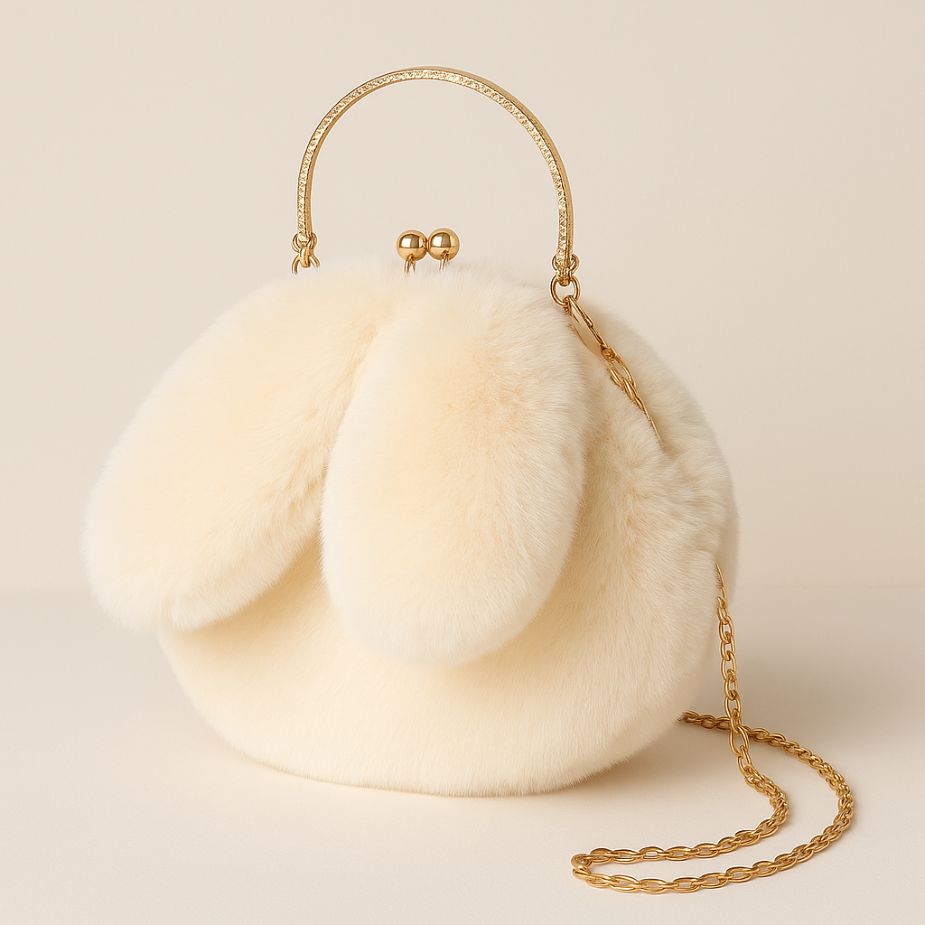 Tämä upea, tekoturkisverhoiltu Alice- laukku yhdistää ainutlaatuisen pehmeyden ja elegantin muotoilun. Sen vaalea, kermaisen sävyinen pinta, kullanväriset yksityiskohdat ja vintage-henkinen kädensija tekevät siitä täydellisen asusteen erityisiin tilaisuuksiin tai arjen tyylikkääseen piristykseen.