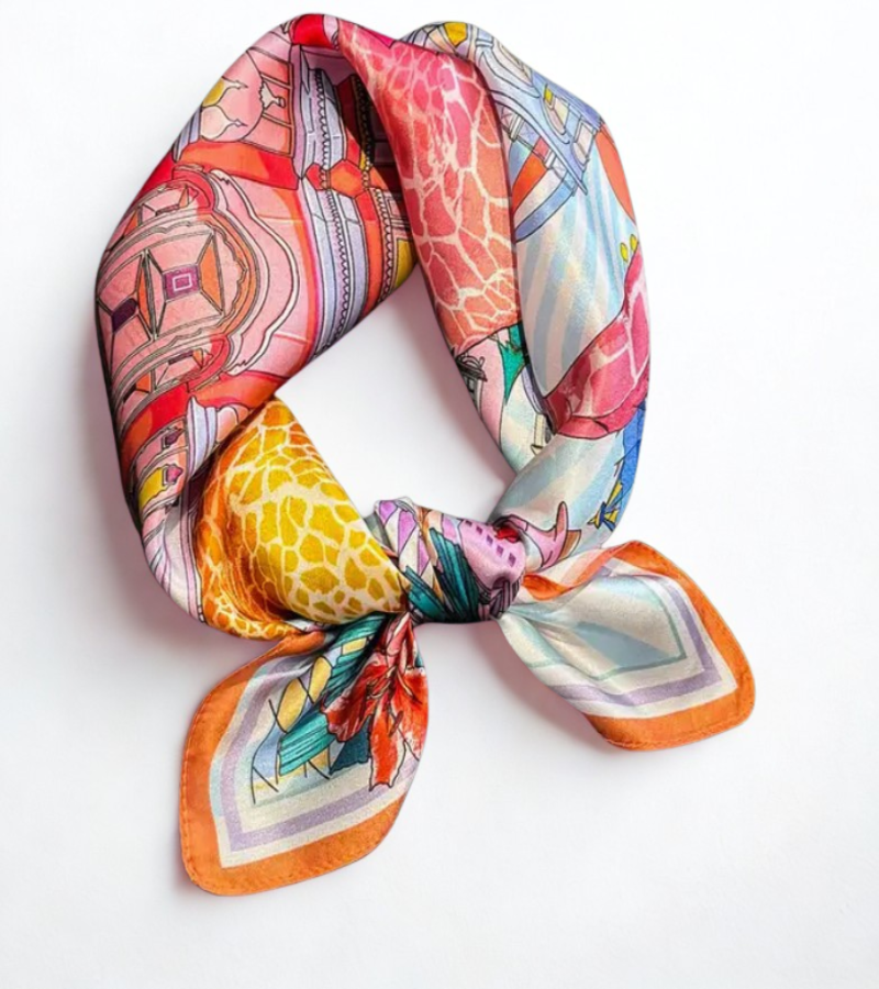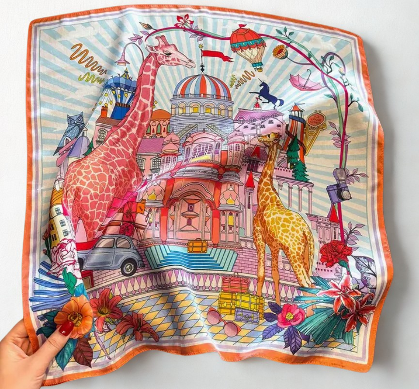 Circus huivi tuo asusteisiisi ripauksen taidetta, eleganssia ja värikkyyttä. Valmistettu ylellisestä 100 % mulberrysilkistä, tämä huivi on yhtä aikaa pehmeä, tyylikäs ja näyttävä. Sen elävä kuviointi ja kirkkaat värit tekevät siitä täydellisen lisän kaikkiin tyyleihin.