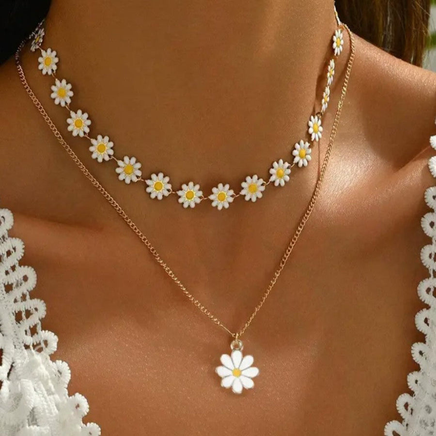 Ihastuttava Daisy-kaulakorusetti tuo mukanaan kepeää ja raikasta kesätunnelmaa! Settiin kuuluu kaksi kaulakorua: herkkä päivänkakkaroilla koristeltu choker ja yksinkertainen ketju, jota täydentää kaunis päivänkakkari-riipus.