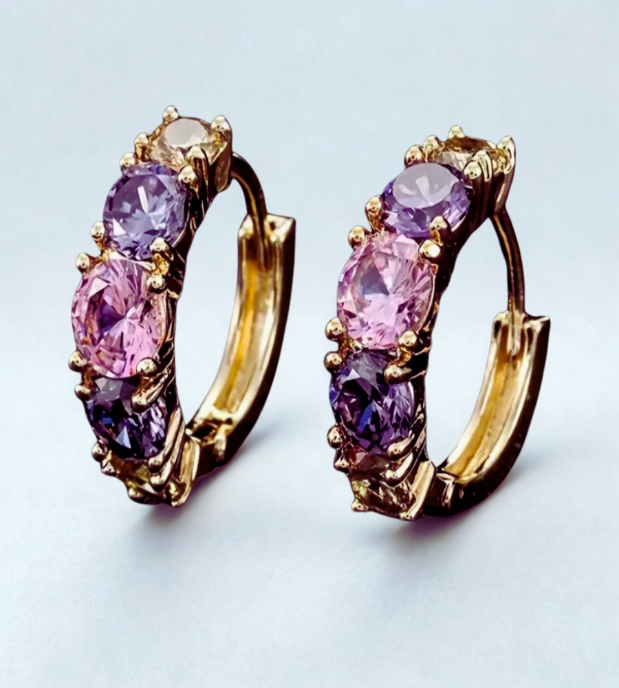 Delilah-korvakorut ovat täydellinen yhdistelmä hienostunutta muotoilua ja säihkyvää värikästä kauneutta. Nämä kullatusta messingistä valmistetut korvakorut ovat koristeltu säihkyvillä vaaleanpunaisen ja violetin sävyisillä kivillä, jotka tuovat asuusi upeaa glamouria.