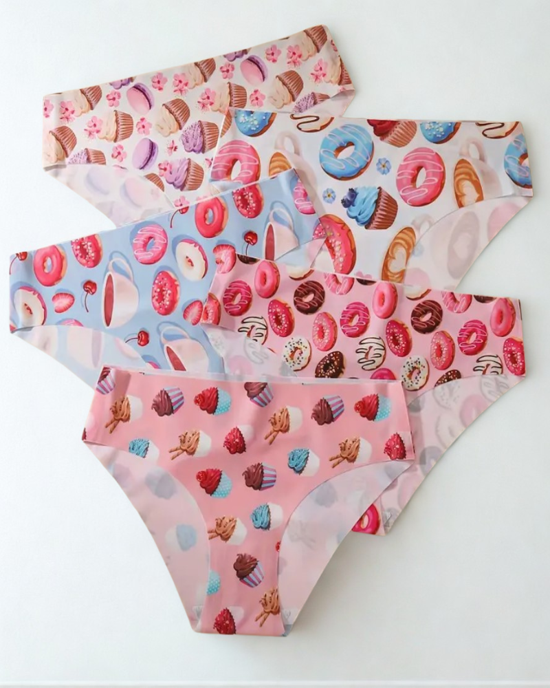 Tuo ripaus herkullista iloa alusvaatevalikoimaasi tällä Dessert alushoususetillä. Settiin kuuluu neljä suloista kuosia, joissa kakkuset, donitsit ja muut herkut koristavat pehmeitä ja joustavia alushousuja. Täydellinen yhdistelmä mukavuutta ja leikkisyyttä!