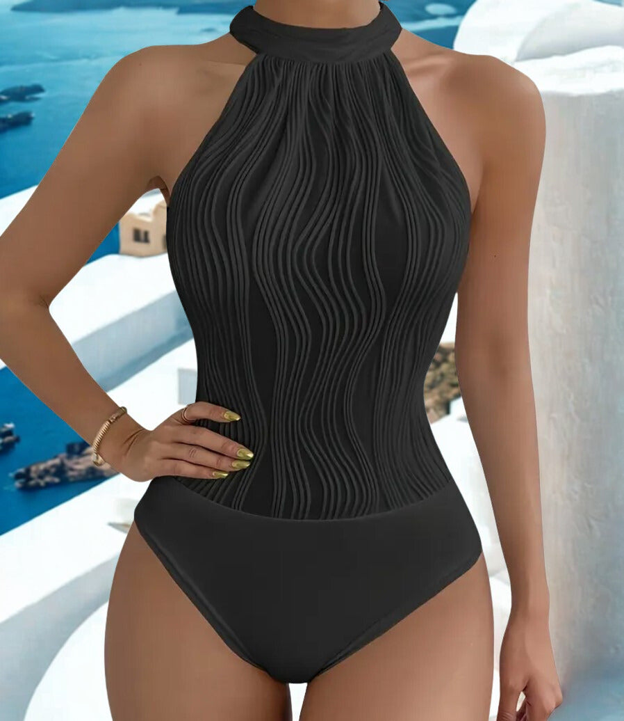 Heiress-uimapuku huokuu hienostuneisuutta ja klassista tyyliä. Upeasti muotoiltu korkea kaula-aukko, läpikuultavat yksityiskohdat ja aaltoileva tekstuuri tekevät tästä uimapuvusta ylellisen valinnan niin rannalle kuin altaalle. Tämä uimapuku on täydellinen niille, jotka arvostavat ajattomia ja tyylikkäitä ratkaisuja.