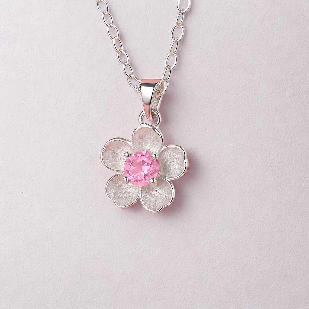 Tuo luonnon kauneus osaksi tyyliäsi tämän ihastuttavan kukka-aiheisen sterling-hopea 925 - Cherry Flower -kaulakorun avulla. Tämä elegantti koru sopii täydellisesti niin arkeen kuin juhlaan.