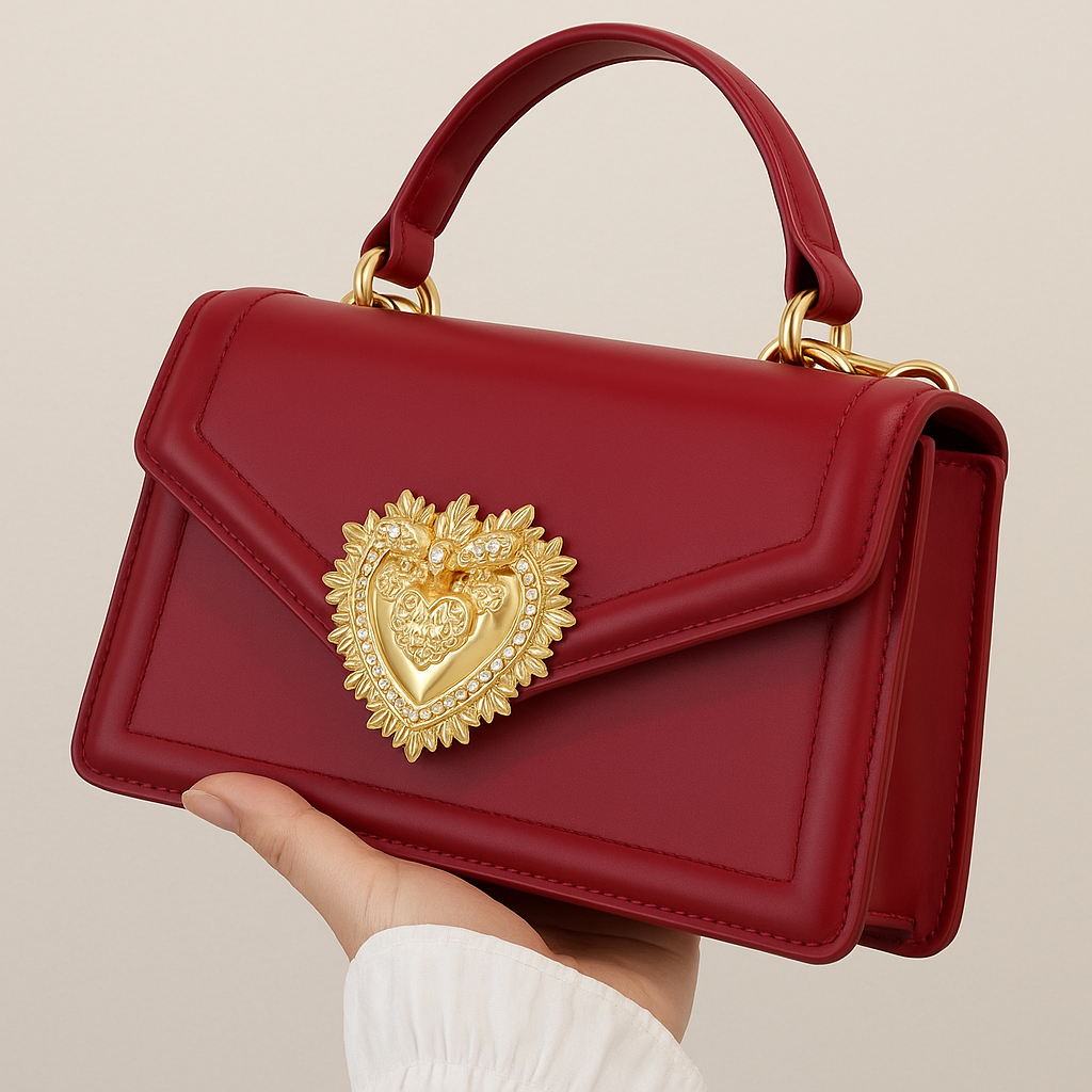 Laukku kuin suoraan sadusta. Snow White -pikkulaukku on jäljitelmänahka ja siinä on ylellinen kultainen sydänsolki. Käsilaukku on kannettavissa kädessä tai crossbody-tyyliin erillisellä kantohihnalla.
