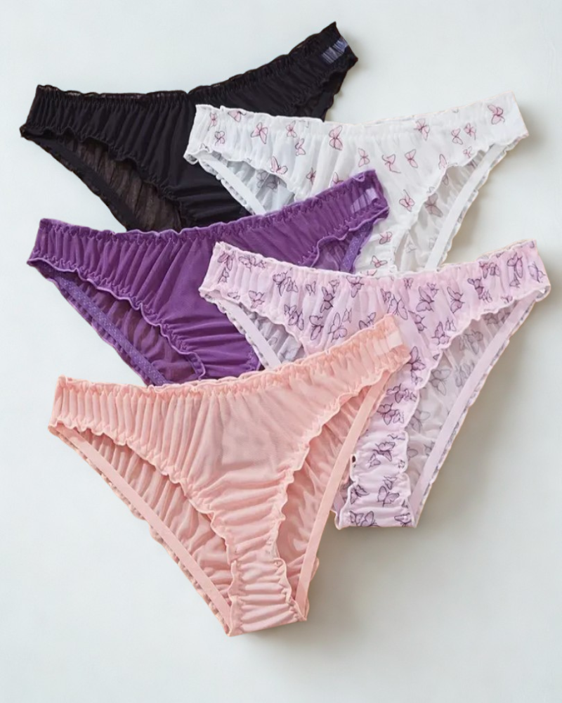 Tuo perhosten keveyttä alusvaatevalikoimaasi tällä Mariposa pikkuhoususetillä. Settiin kuuluu viisi kaunista mallia, joissa yhdistyvät herkät röyhelöyksityiskohdat ja suloiset perhoskuosit. Täydellinen valinta mukavuuteen ja naiselliseen tyyliin.