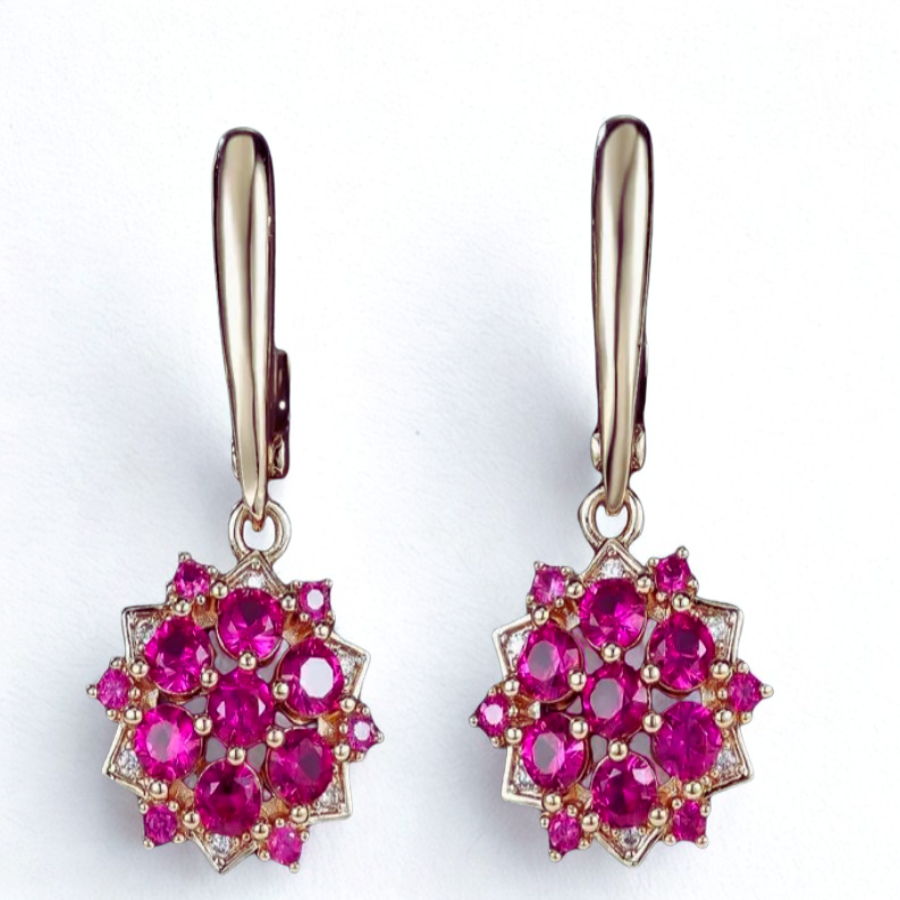 Säihkyvät punaiset kivet: Korvakorujen upeasti hohtavat kivet huokuvat intohimoa ja viehätystä, täydelliset juhlatilaisuuksiin.