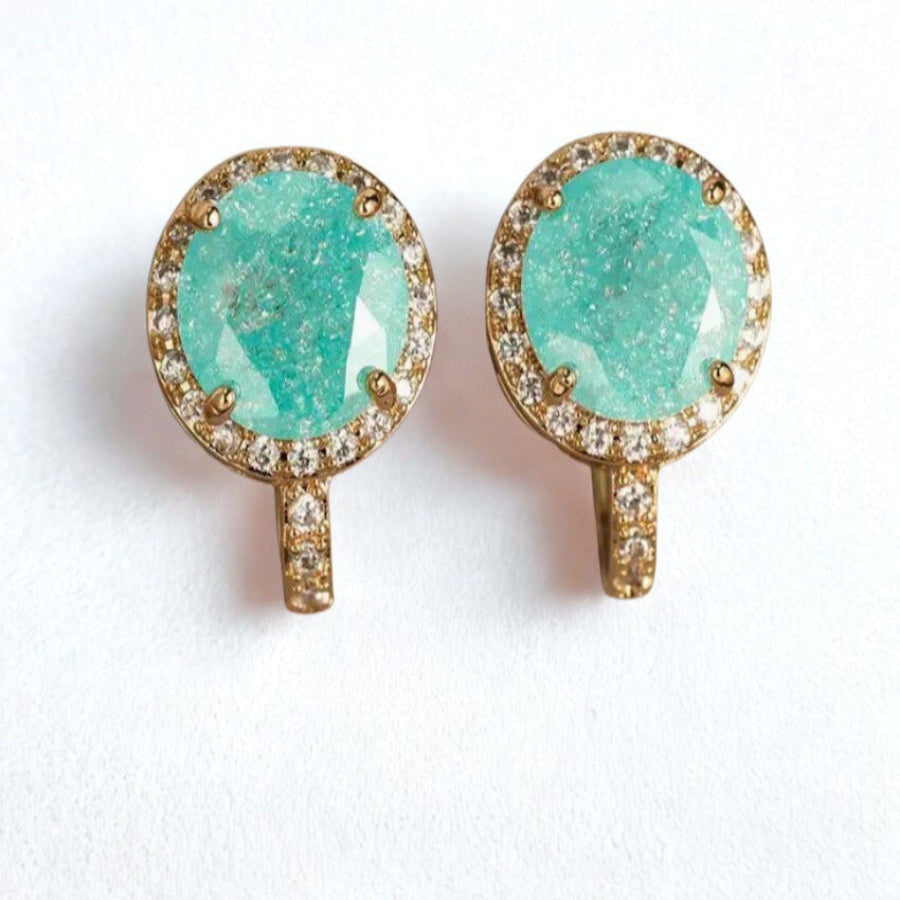 - Koristeet: Pienet kirkkaat kivet kehystävät keskikiveä, tuoden korvakoruihin lisää loistoa ja eleganssia.