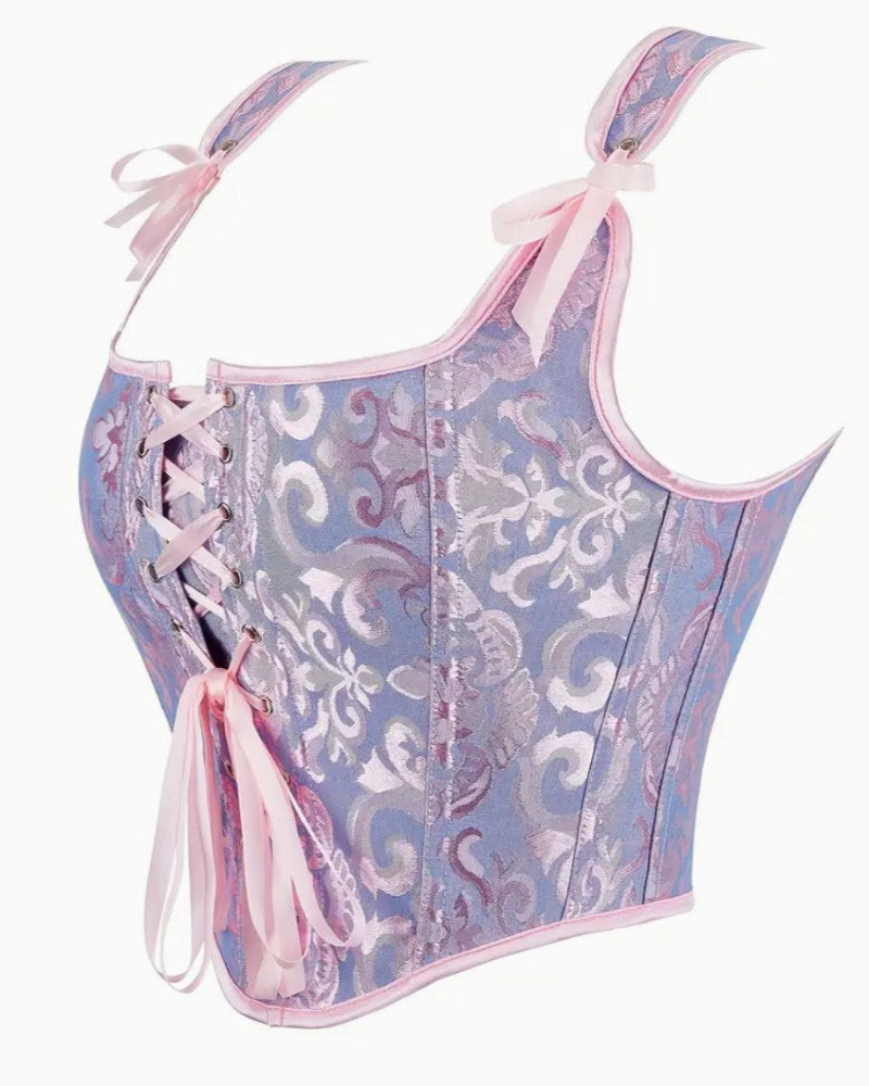 Astetta satumaisempi tyyli! Rapunzel-korsetti on suunniteltu tuomaan esiin kauniit yksityiskohdat ja naisellinen siluetti. Ylellinen kuosi yhdistyy tyylikkäisiin nauhoihin, jotka lisäävät korsettiin romanttista ja eleganttia ilmettä. Säädettävät nauhat takaavat täydellisen istuvuuden, ja korsetin huolellisesti viimeistellyt yksityiskohdat tekevät siitä upean valinnan niin juhla-asuun kuin erityisiin hetkiin. Tämä korsetti ei ainoastaan korosta vartaloasi, vaan myös herättää ihailevia katseita!