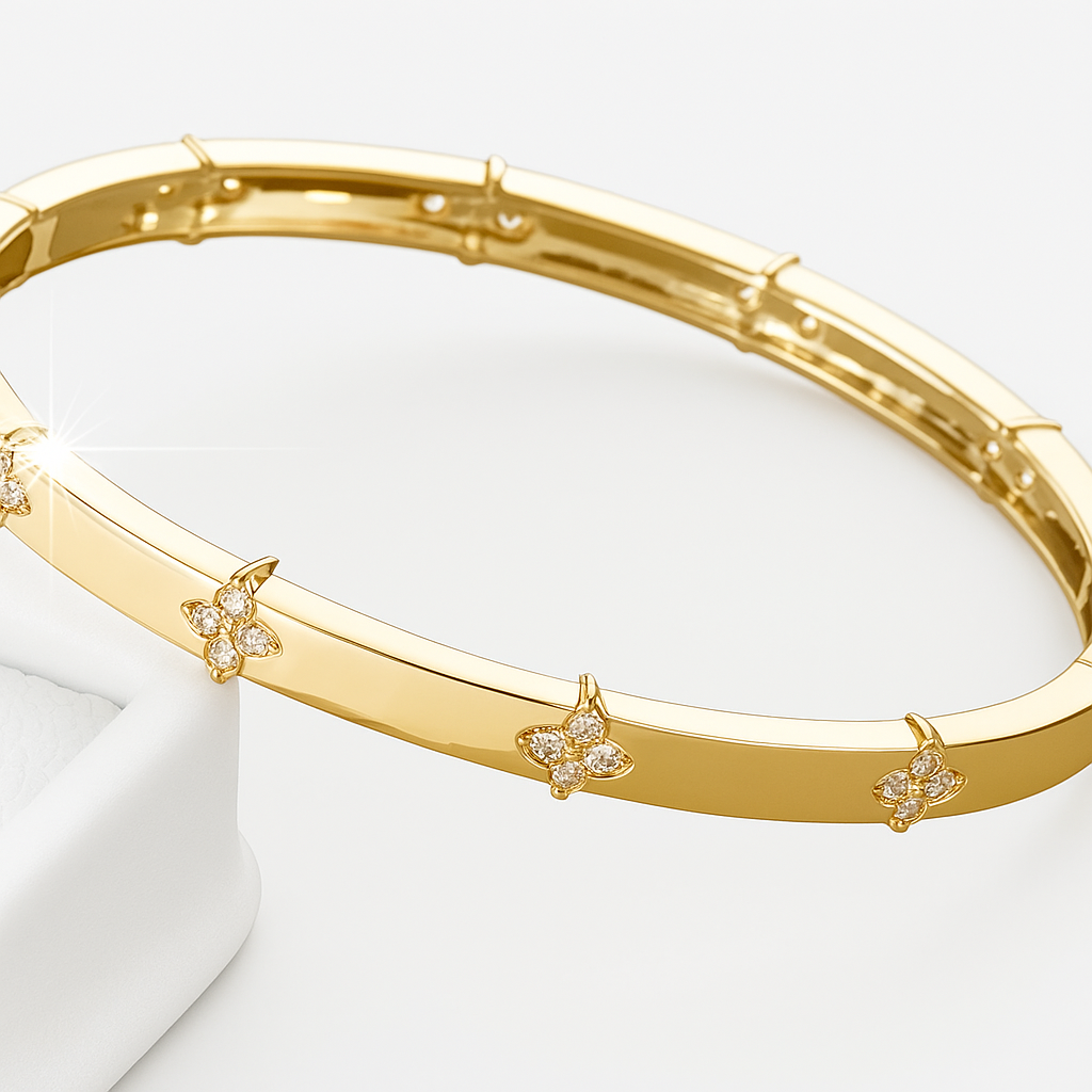 Tämä upea Duchess -rannekoru on täydellinen valinta, kun haluat lisätä ripauksen ylellisyyttä asuusi. Korun sileä, kiiltävä pinta ja tarkasti asetellut kimaltavat yksityiskohdat tekevät siitä klassisen, mutta modernin asusteen, joka kääntää katseita missä tahansa. Korkealaatuinen kullattu pinta, joka säilyttää kiiltonsa pitkään. Kevyt ja mukava käyttää, sopii täydellisesti ranteeseen. Klassinen, mutta ajaton – täydellinen sekä arkeen että juhlaan.