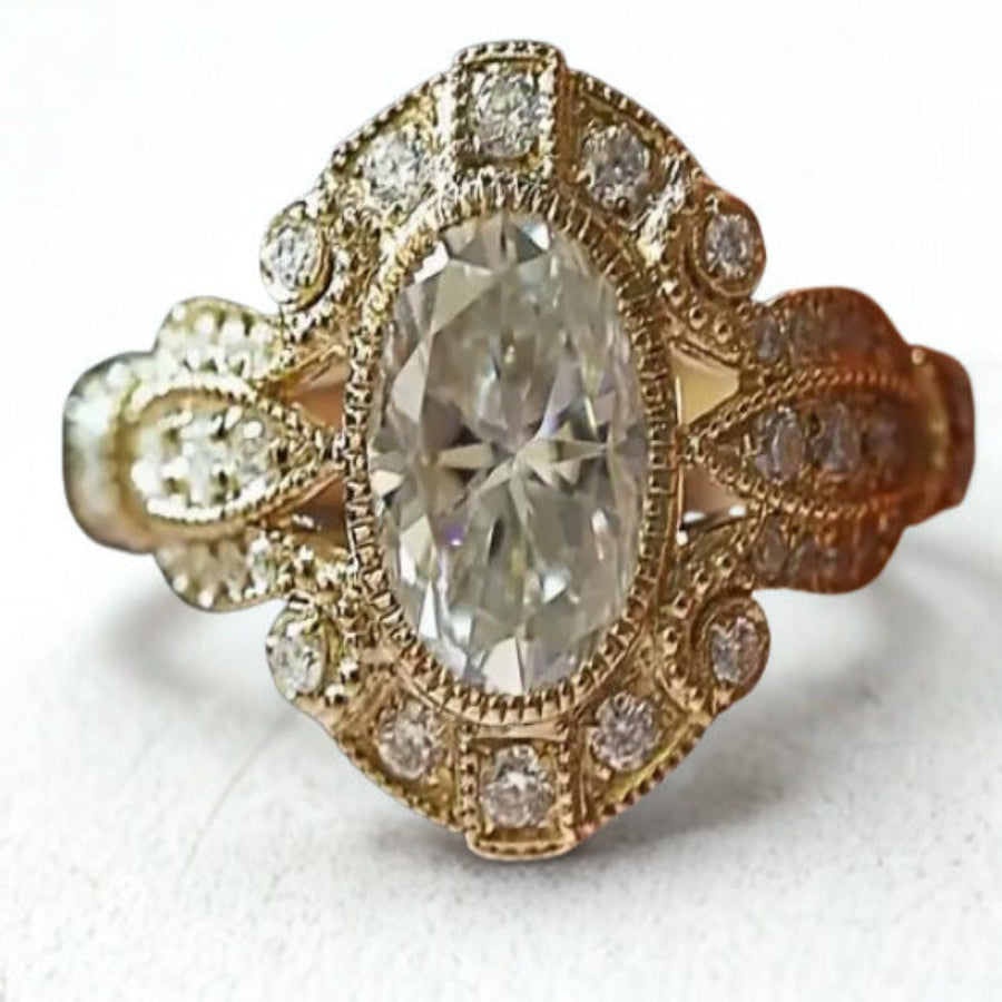 Ylellinen The Queen sormus huokuu kuninkaallista charmia. Kullatusta messingistä valmistettu sormus on koristeltu näyttävällä keskikivellä ja säihkyvillä yksityiskohdilla, jotka tekevät siitä upean katseenvangitsijan. Moissaniitti, zirkoneja ja kullattua messinkiä. Täydellinen valinta juhlavampiin hetkiin!
